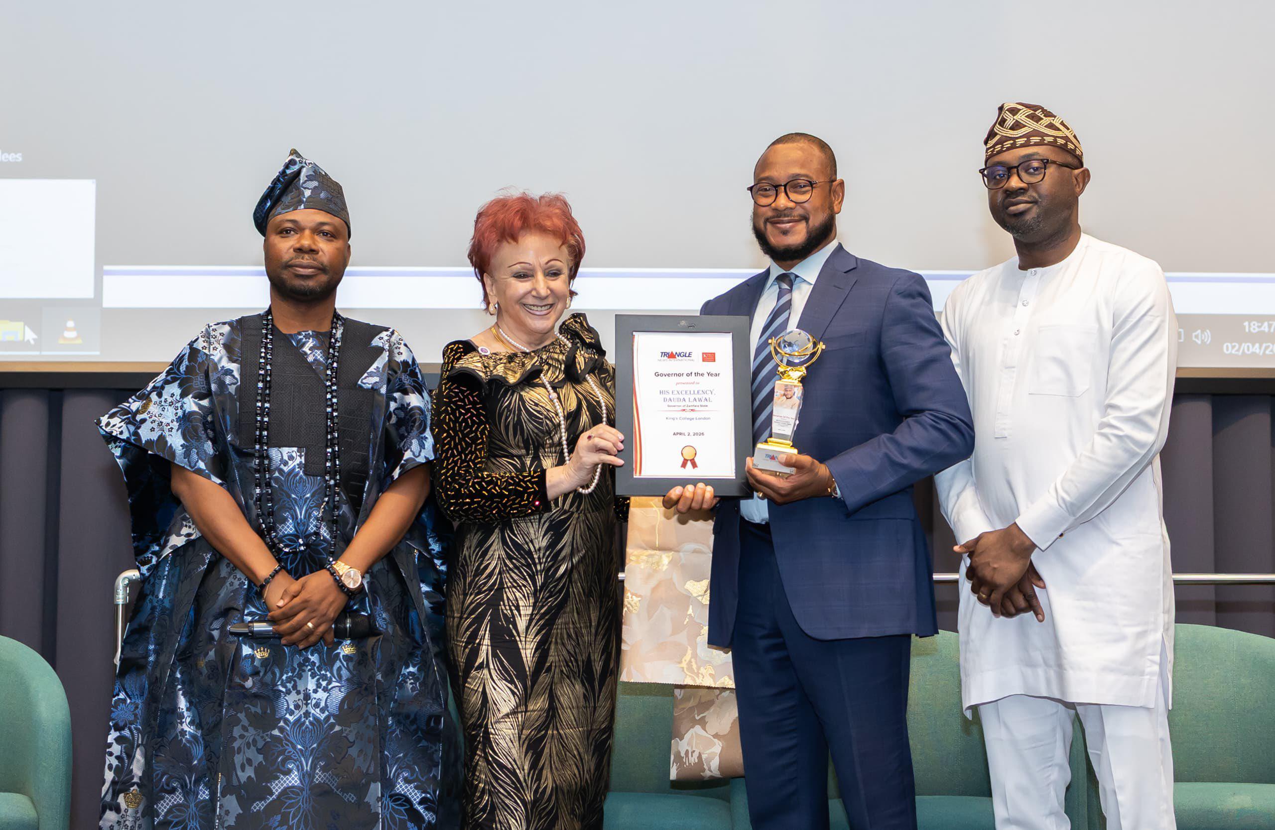 Governor Dauda Lawal has been honored with the Outstanding Governor of the Year award by Triangle Media International Magazine.